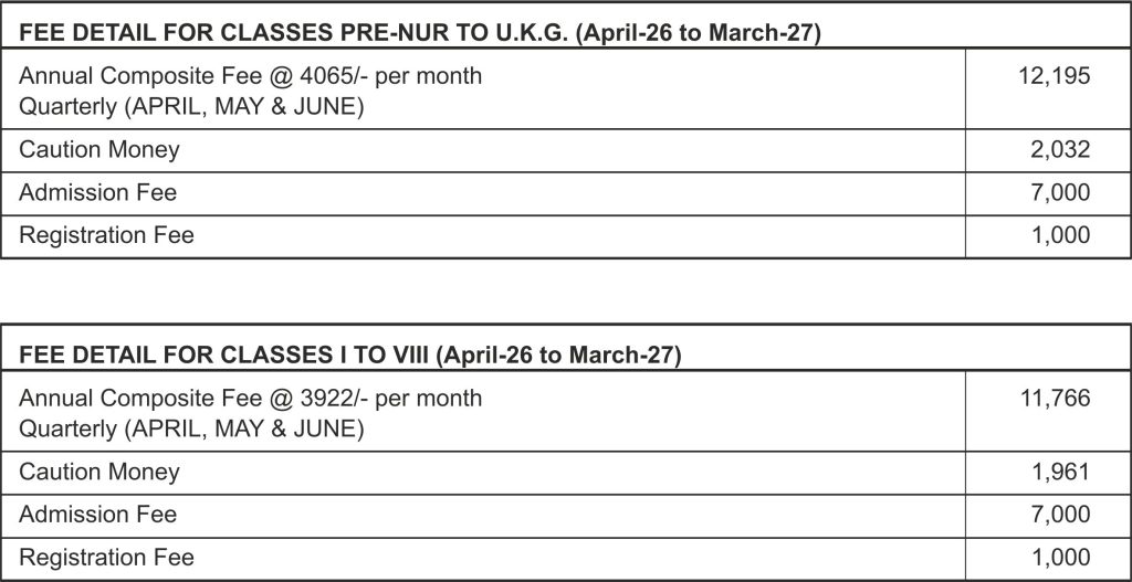 Any late fees/penalty applicable is to be paid directly at school counter separately.